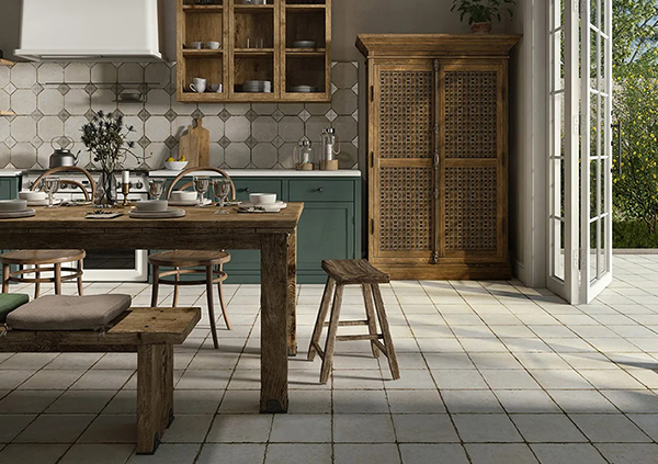 Intemporalité. L’habituel, renouvelé. carrelages et faïences classiques, ceux d’une vie, mais avec un design mis à jour. Formes classiques, avec une finition rustique, avec des motifs géométriques, du carrelage rectangulaire ou ethniques inspirés des carreaux vintage. Si on parle de couleur, on mise sur la terre et les gammes naturelles.