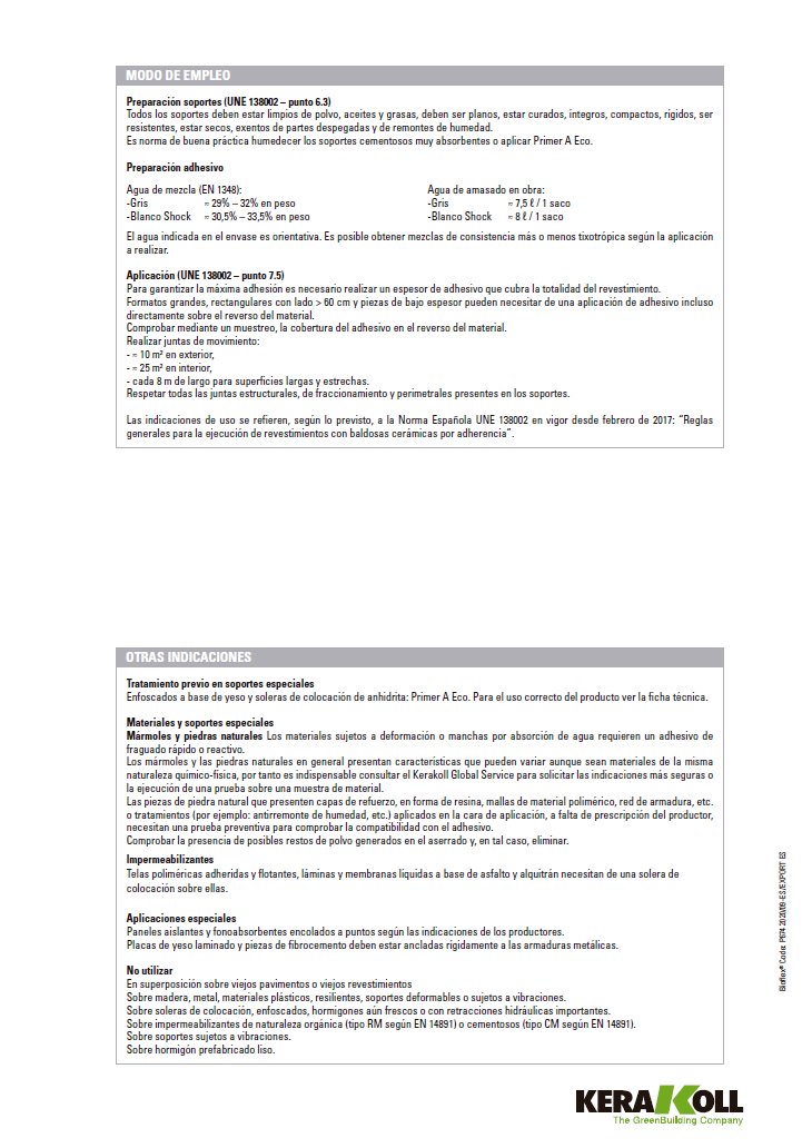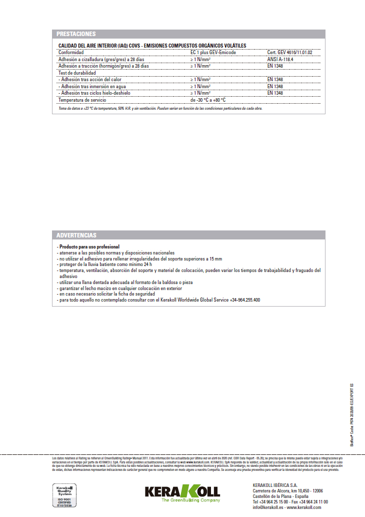 – Pour tout ce qui n’est pas couvert, consultez le Kerakoll Worldwide Global Service 34964255400
