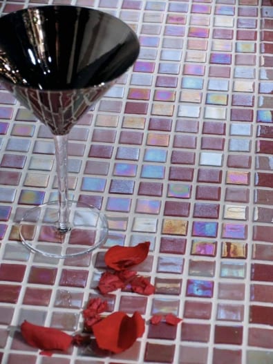 Mosaique Acquaris Carmin. Tesselles de 2.5×2.5 en format émaillé 31.6×31.6.