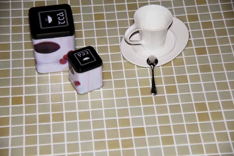 Mosaique de piscine typique conçue pour les zones humides ou pour les salles de bain.
