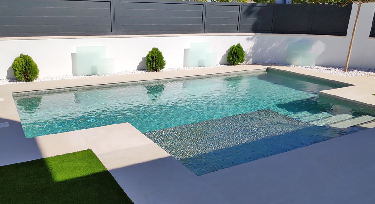 Mosaïque piscine typique conçue pour les zones humides ou pour les salles de bain.