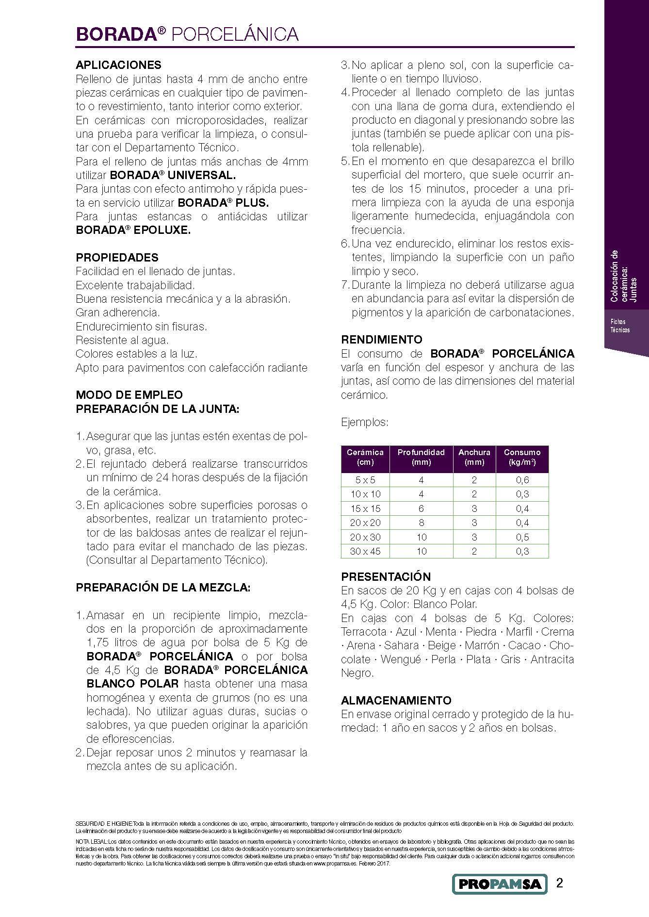 11,56 € (TTC)BORADA PORCELÁNICA est un mortier spécial à base de ciment, granulats à granulométrie sélectionnée, résines, additifs organiques et pigments minéraux stables