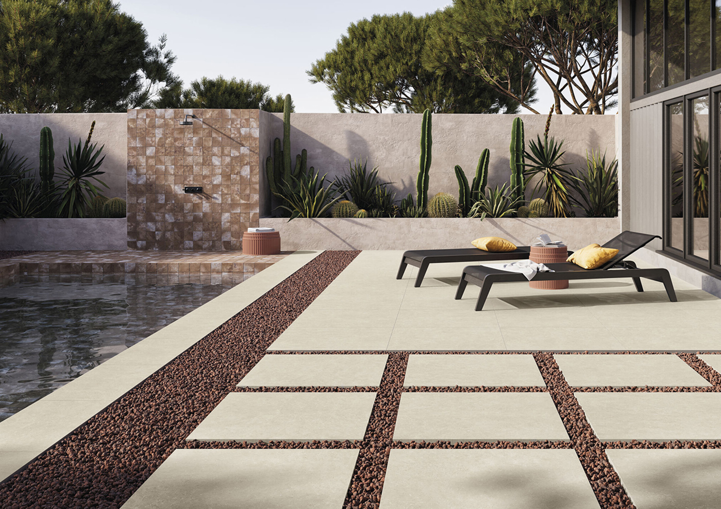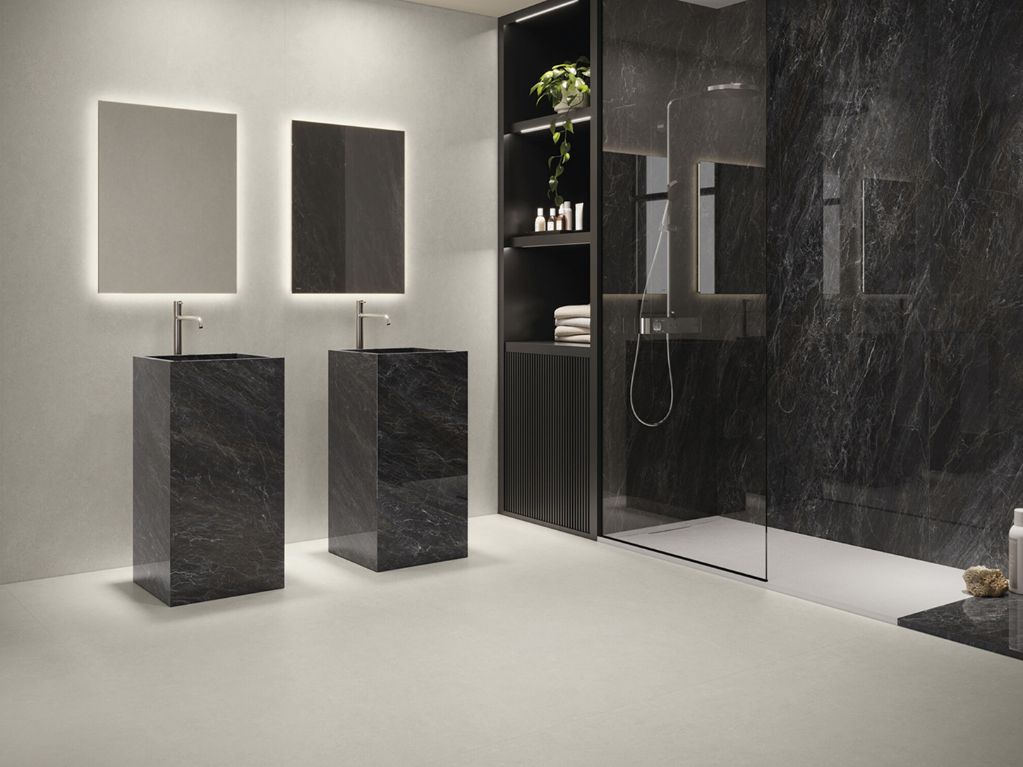 Cette série est disponible dans une large gamme de formats offrant une grande flexibilité d’installation. Les formats incluent 120×120 cm, 60×120 cm, 90×90 cm (également disponible en version 20 mm d’épaisseur pour l’extérieur), 75×75 cm, 60×60 cm (aussi avec une option de 20 mm pour l’extérieur), et 30×60 cm en grès cérame rectifié. De plus, elle propose des revêtements en pâte blanche aux formats 40×120 cm et 30×60 cm, conçus pour assurer une continuité visuelle entre sols et murs.