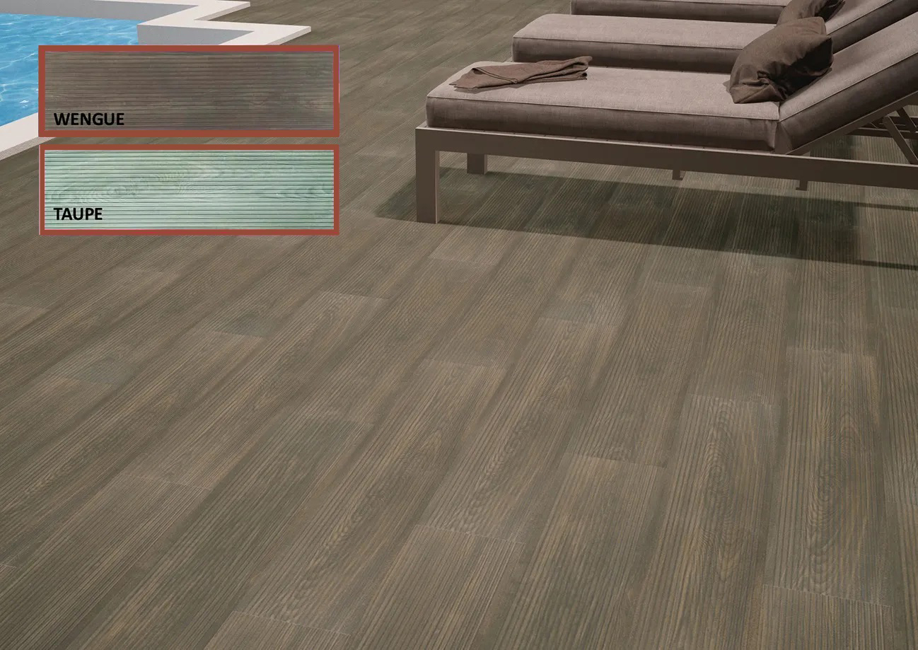 30,16 € – 32,00 €Plage de prix : 30,16 € à 32,00 € / m2 (TTC)La série ADOBERY est un grès cérame pour extérieurs ou zones humides grâce à son revêtement antidérapant. Il est disponible au format 23×120 et disponible en deux couleurs: Taupe et Wengue.