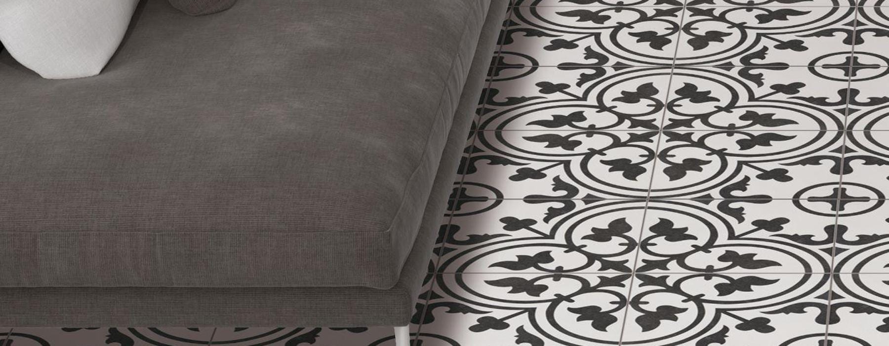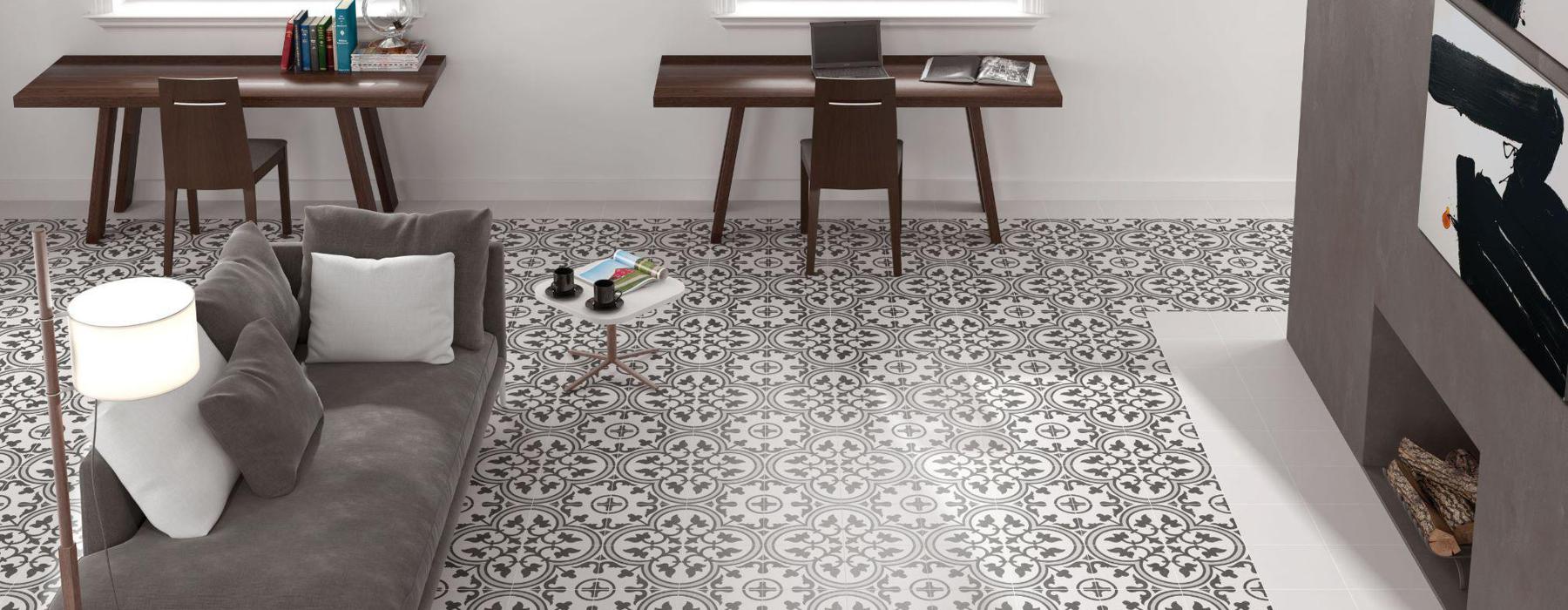 Série ART. Imitation de carreaux de ciment en grès cérame au format 25×25, présente une finition mate.
