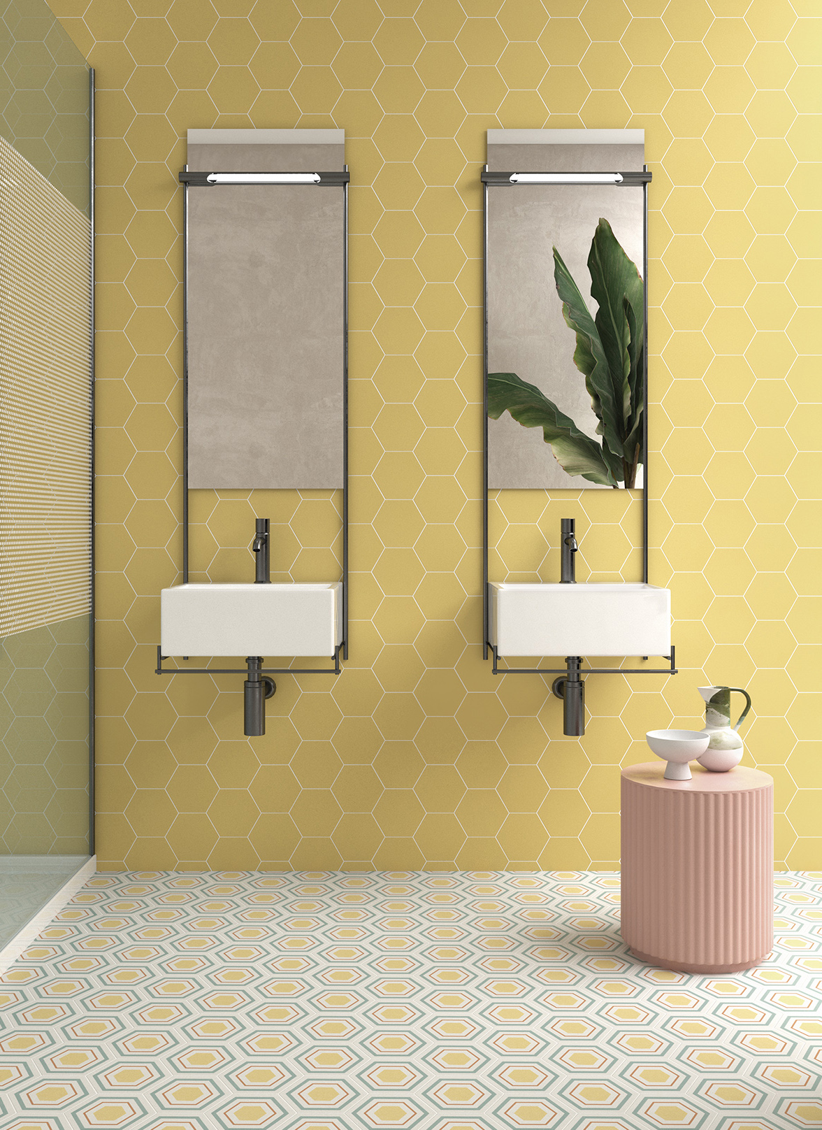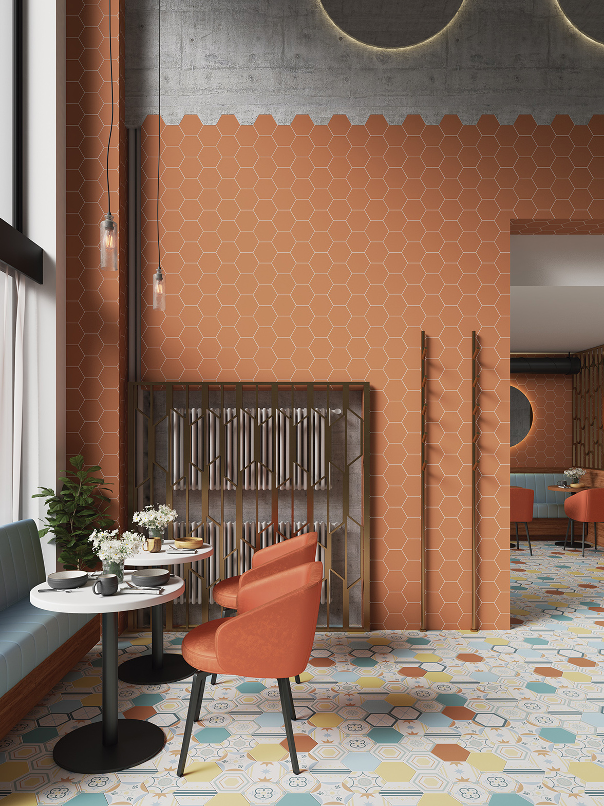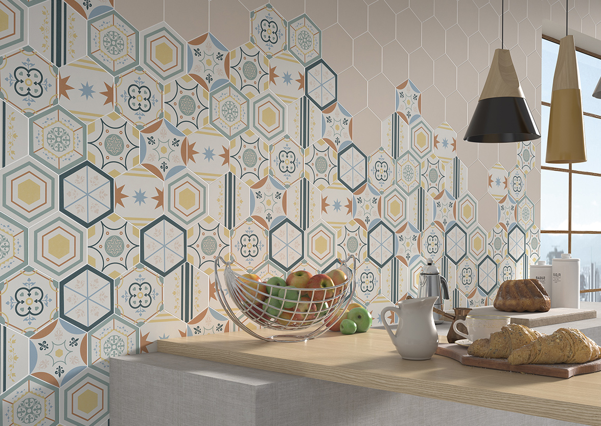 La Série BOOM un carrelage en grès cérame effet carreau de ciment en format 14×16 hexagonal, avec une finition mate et disponible dans plusieurs couleurs:
