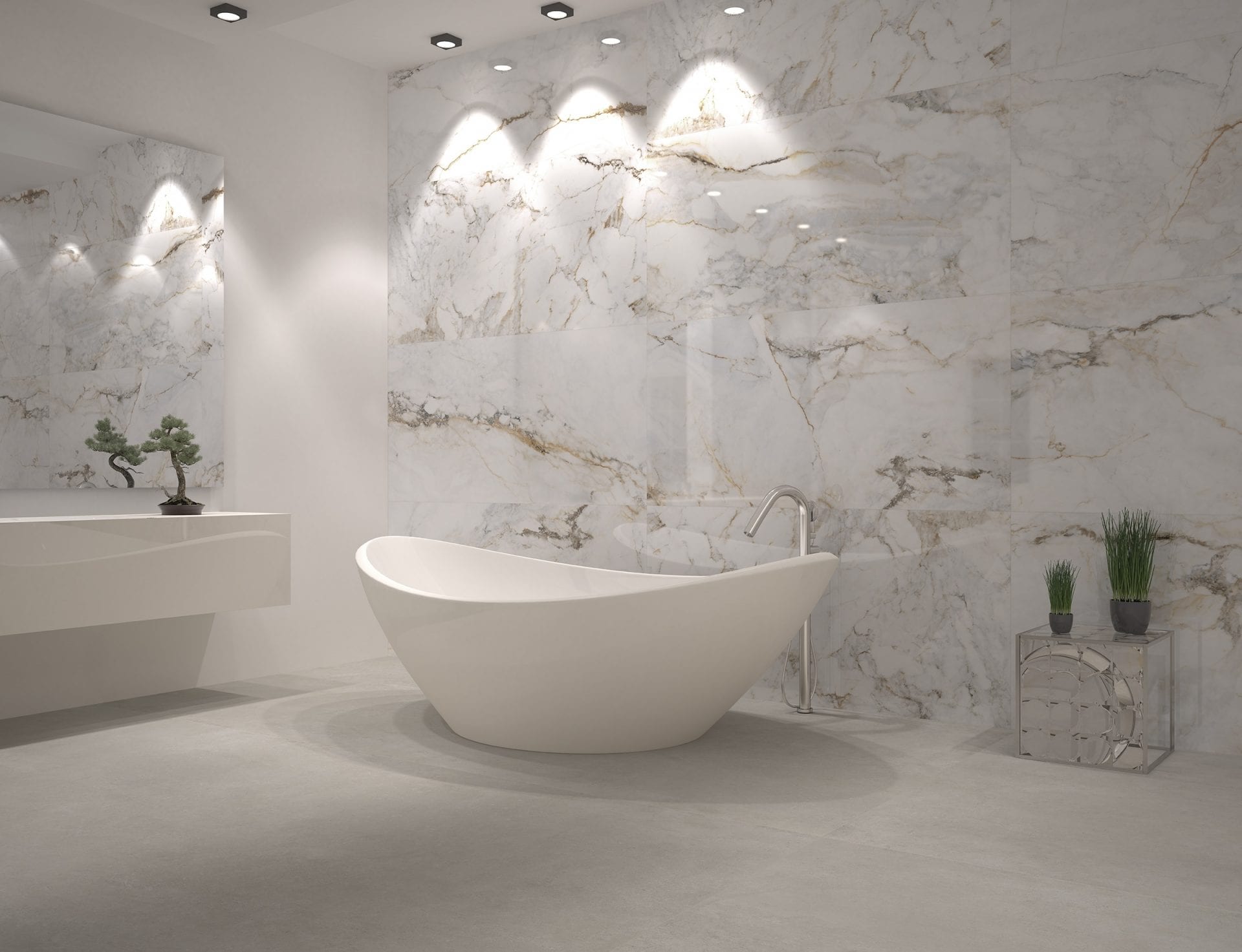 39,02 € / m2 (TTC)La Série CALACATA GOLD est un Grès cérame imitation marbre dans différents formats et finitions: