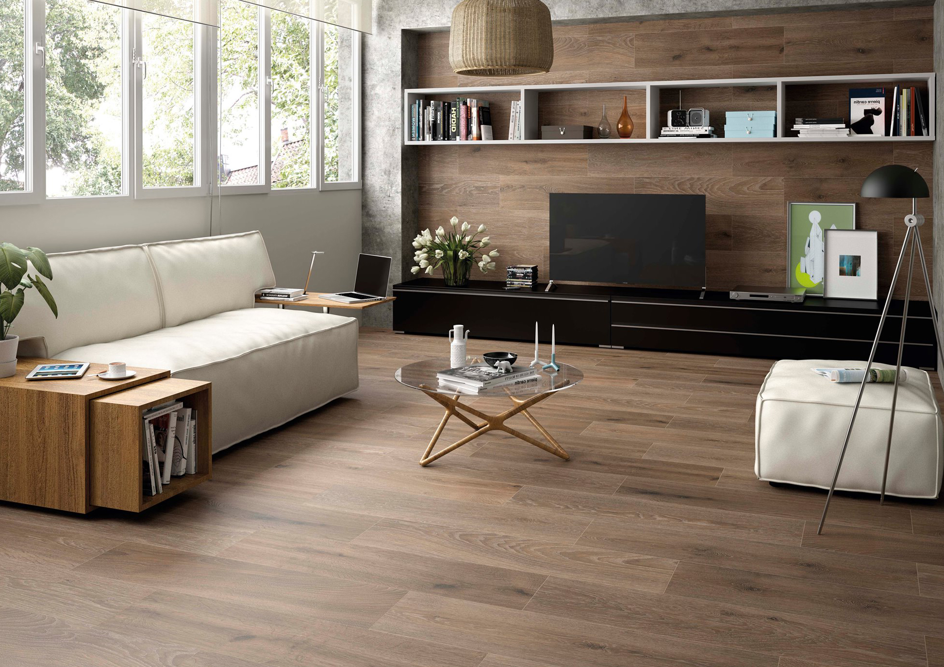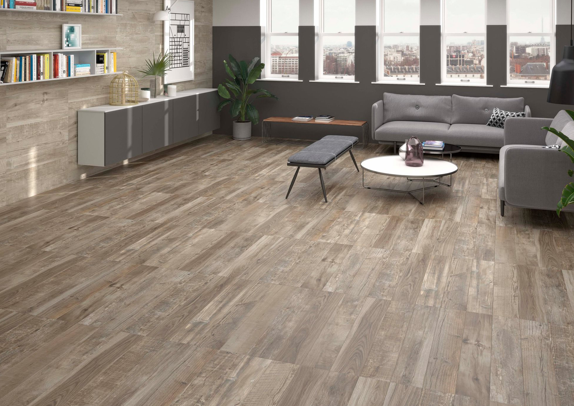 La série ESPELTA est un grès cérame effet bois rectifié au fini mat disponible au format 30X150.