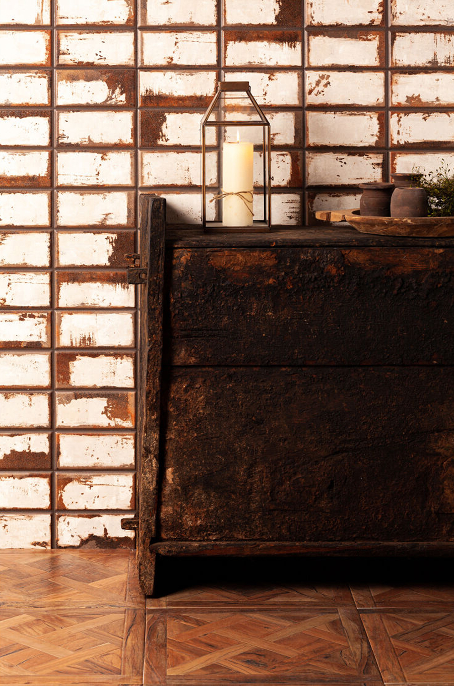 Grâce à la technologie avancée Layer Tech, cette collection atteint un niveau de détail et de profondeur sans précédent. La finition ne montre pas seulement visuellement la texture rugueuse et oxydée du fer, mais permet également de la ressentir au toucher, offrant une expérience sensorielle unique à chaque pièce. La technologie appliquée génère une apparence authentique et tridimensionnelle, rappelant les objets métalliques qui ont survécu au passage du temps.