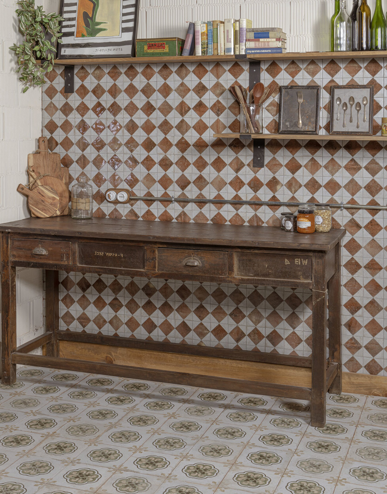 Série Francisco Segarra FS PORTO . Carrelage en pâte rouge, type carreau de ciment en format 45×45, finition naturelle.