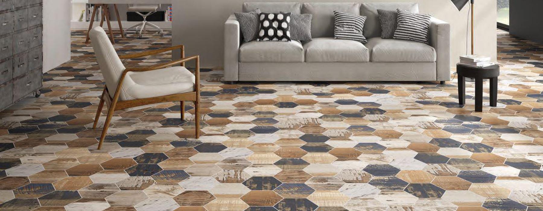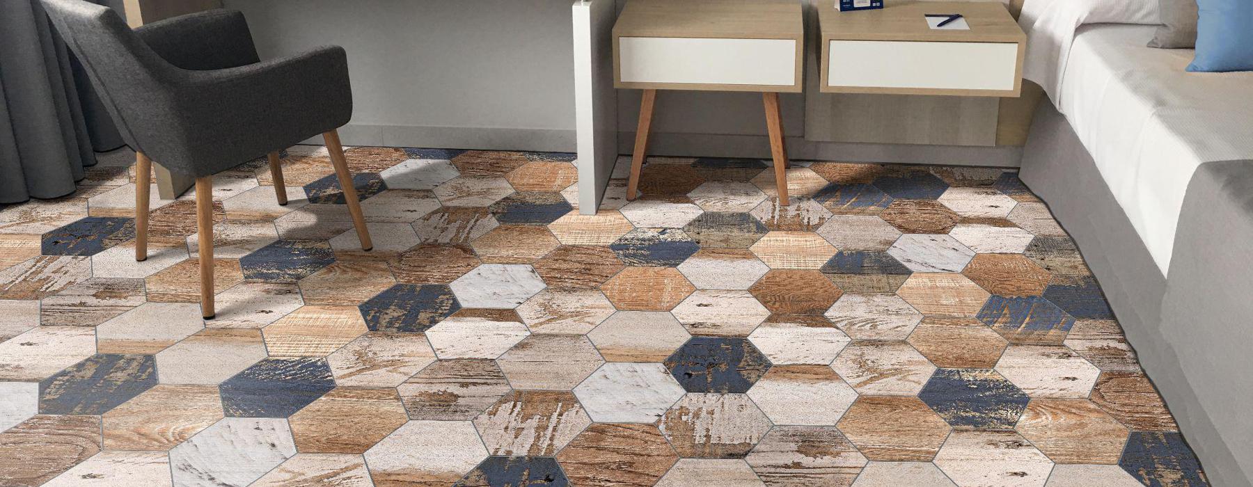La série GAUGUIN LUBLIN est un grès cérame de type ciment au format hexagonal 22×25.