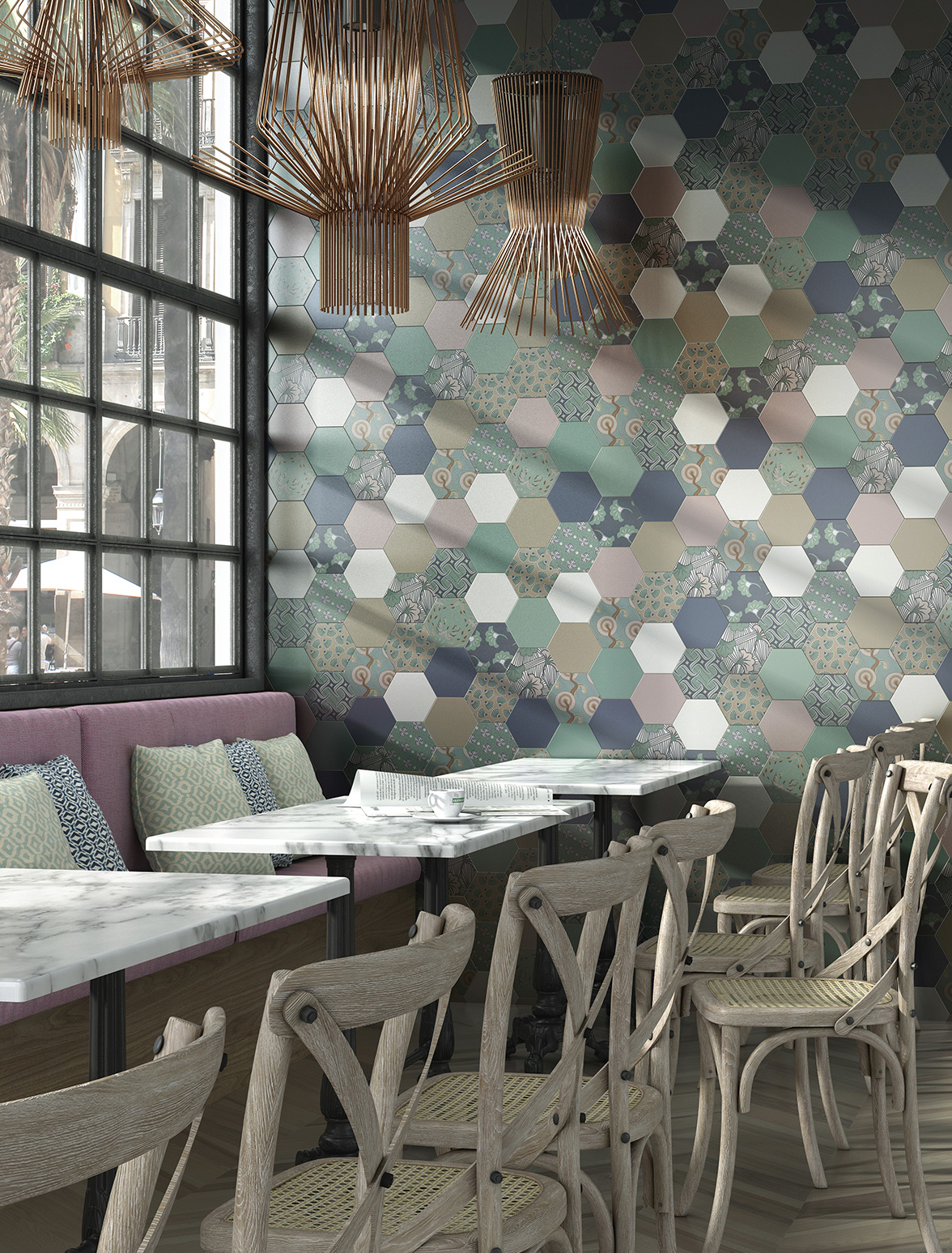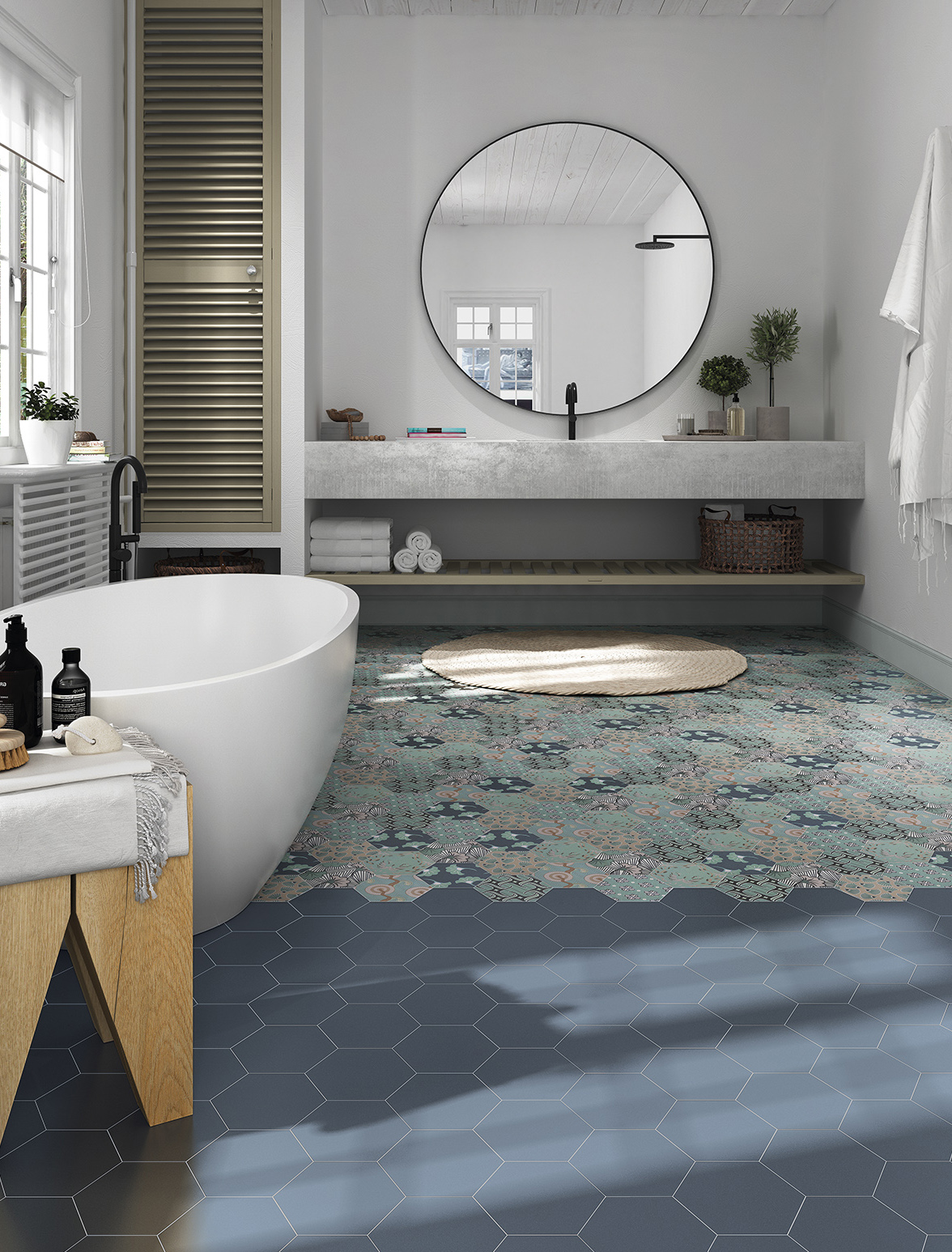 La Série GOOD VIBES est un carrelage en grès cérame effet carreau de ciment en format 14×16 hexagonal, avec une finition mate et disponible dans plusieurs couleurs: