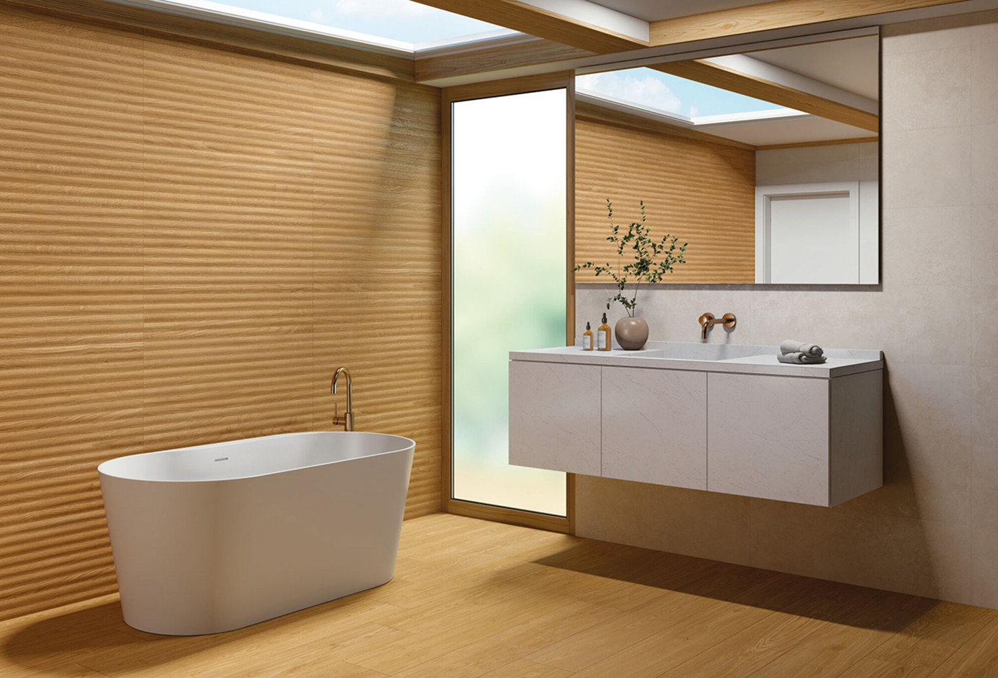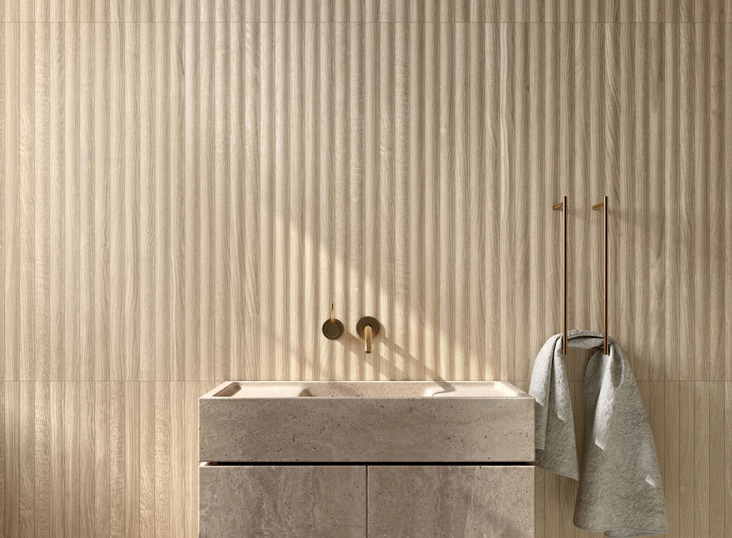 64,44 € / m2 (TTC)La collection GRANIER WALL est un revêtement en pâte blanche au format 33,3×100 cm avec une épaisseur de 9,8 mm. Ce revêtement présente un relief imitant le bois de lattes bombées, créé avec la technologie avancée Shaped pour obtenir un effet de naturalité extrême. Disponible en couleurs natural, taupe et honey, la collection s’intègre parfaitement avec le sol en grès cérame de Granier Floor, offrant un design cohérent et élégant pour tout espace intérieur.