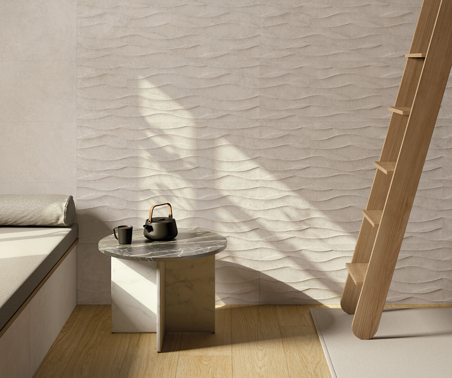 Une des caractéristiques les plus distinctives de cette collection est son relief ondulé, qui apporte une texture riche et une dimension visuelle aux murs. Ce design célèbre l’imperfection à travers des vagues douces et fluides qui imitent les irrégularités naturelles, ajoutant un intérêt esthétique unique et un caractère profond à la décoration intérieure.