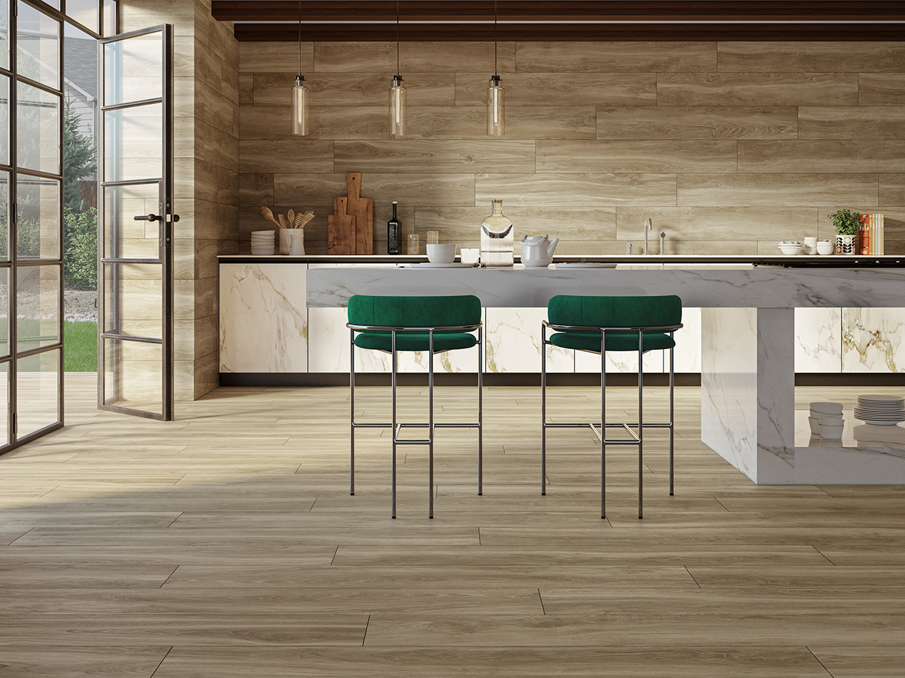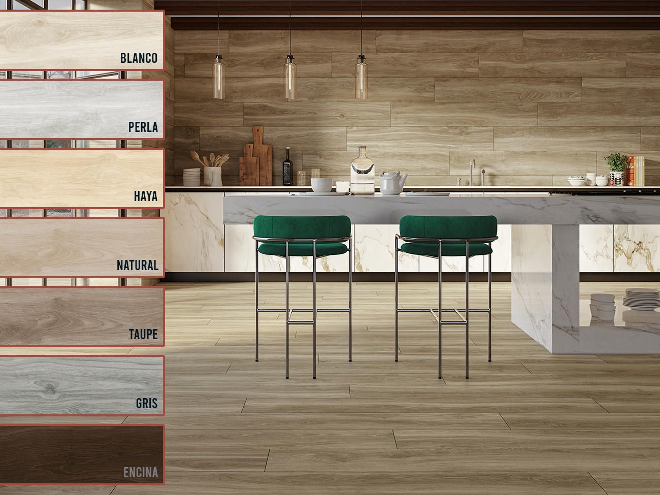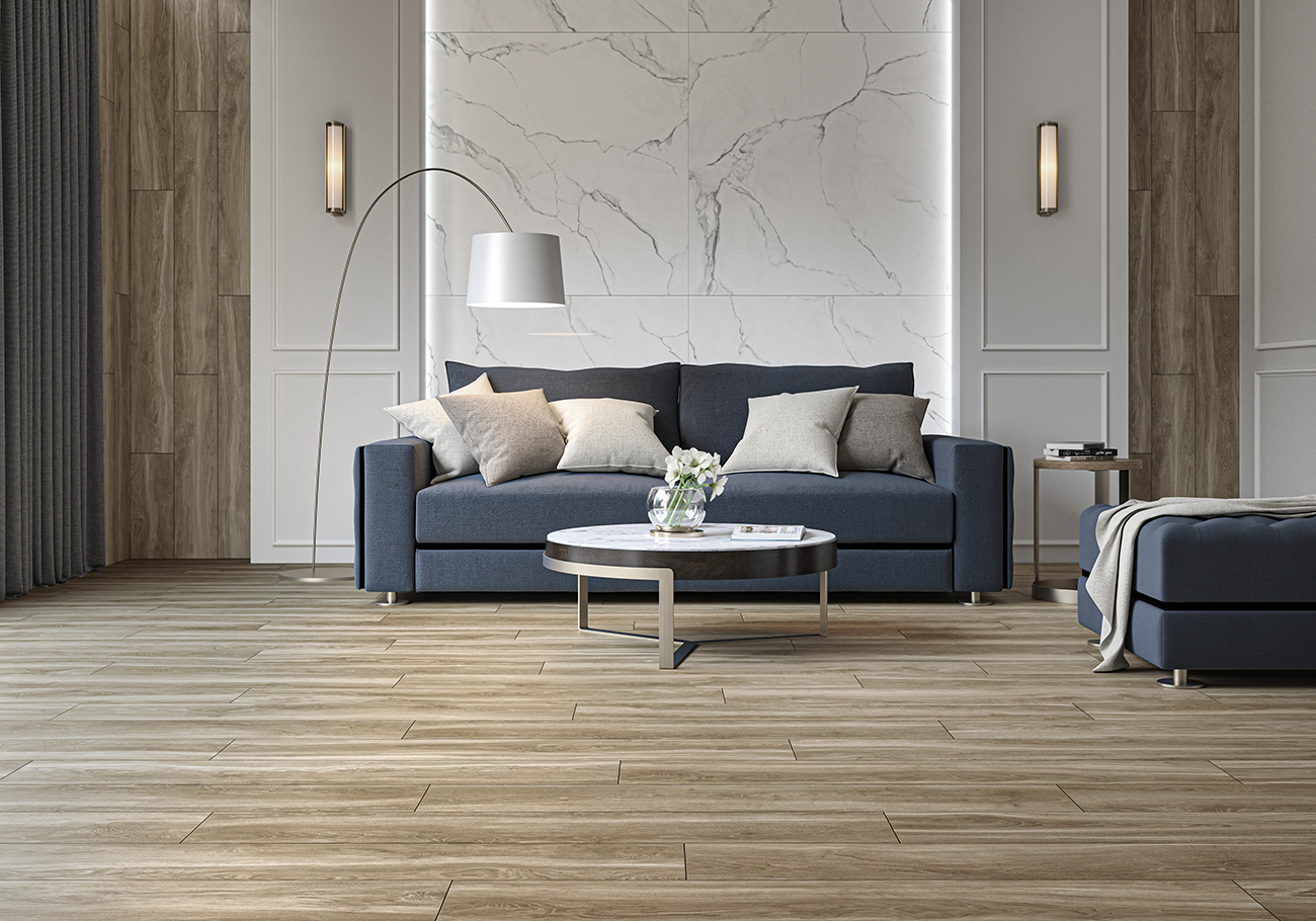 Tout d’abord, la série HELSINKI apporte de la personnalité à nos espaces tout en offrant des teintes adaptées à nos besoins pour n’importe quel environnement. En résultat, nous avons une imitation de bois avec différentes nuances de couleurs qui crée une atmosphère originale avec toute la chaleur du bois naturel mais avec une touche différente.