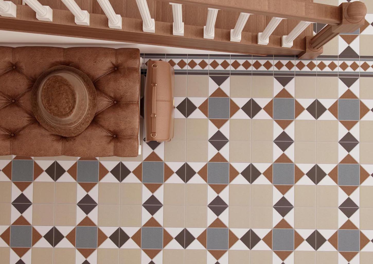 Inspirée par la grandeur et l’esthétique détaillée de l’époque victorienne anglaise, la collection HOUSE OF VANITY ramène au présent la tradition des pavages décoratifs avec une touche contemporaine. Cette collection de grès cérame émaillé, au format 33×33 cm et d’une épaisseur de 9 mm, se distingue par sa finition naturelle mate qui offre une surface douce et sophistiquée.