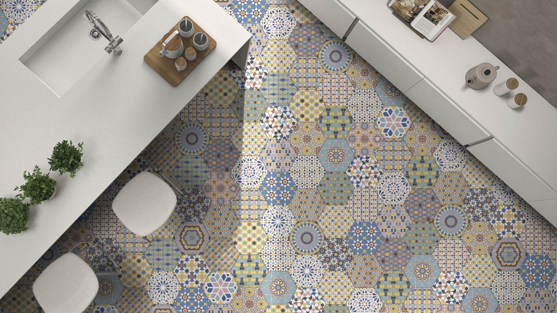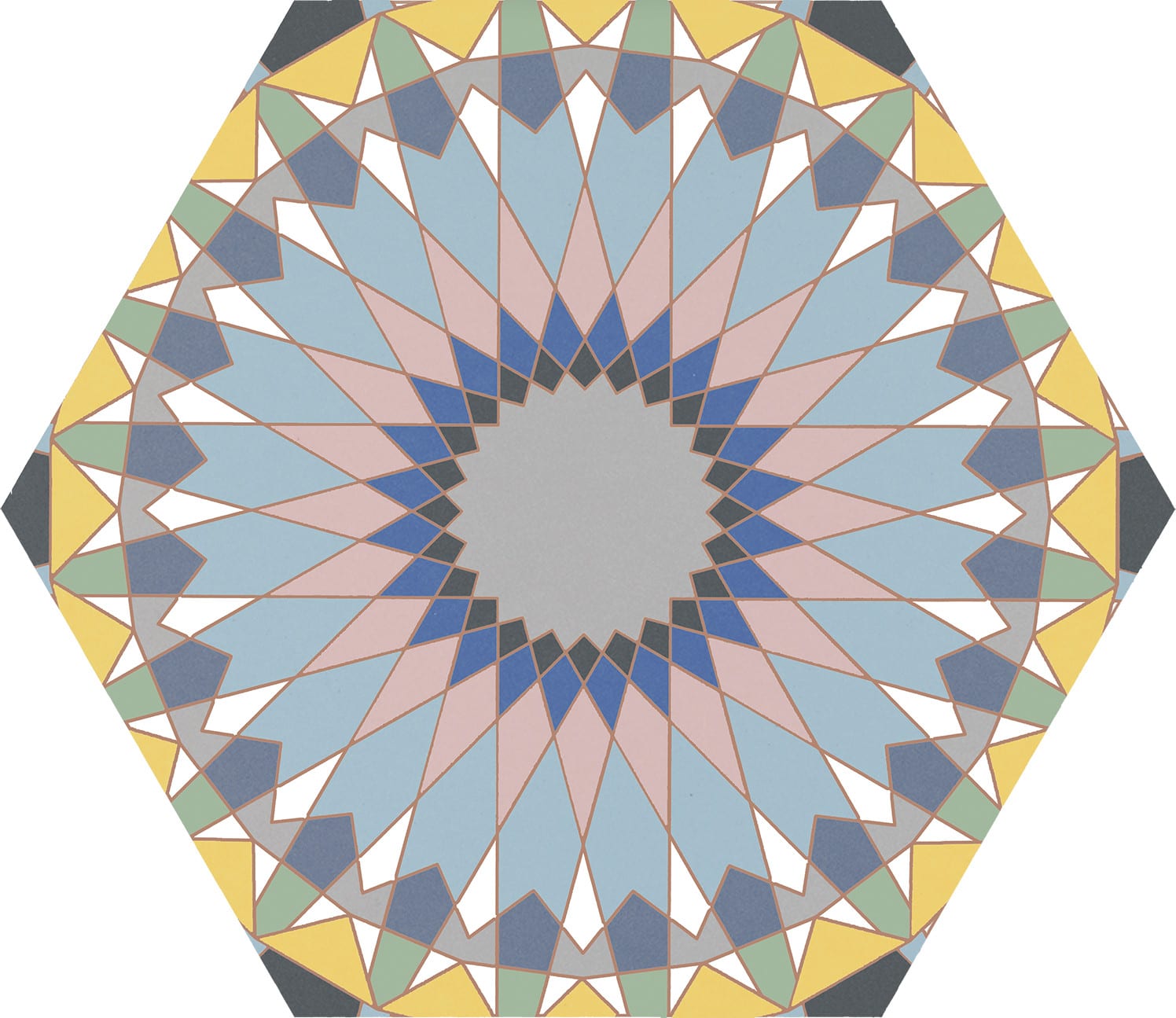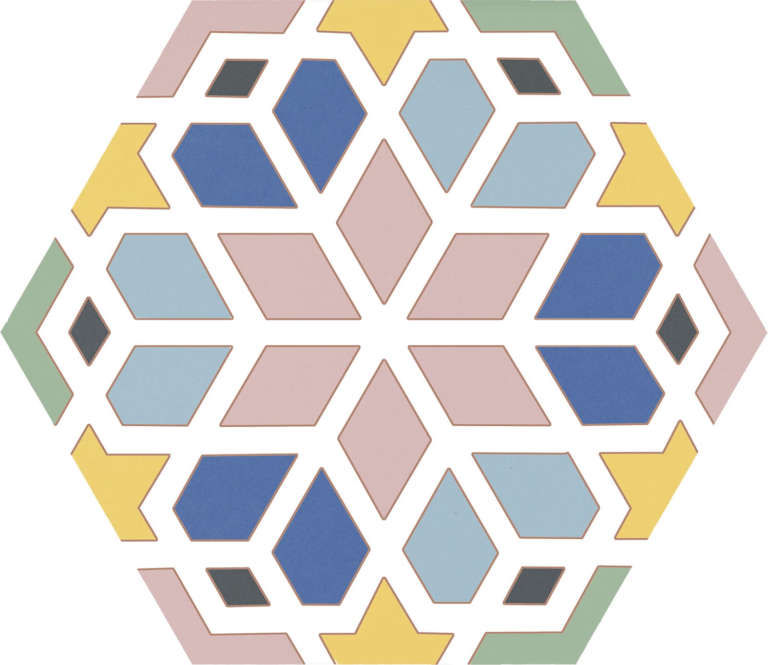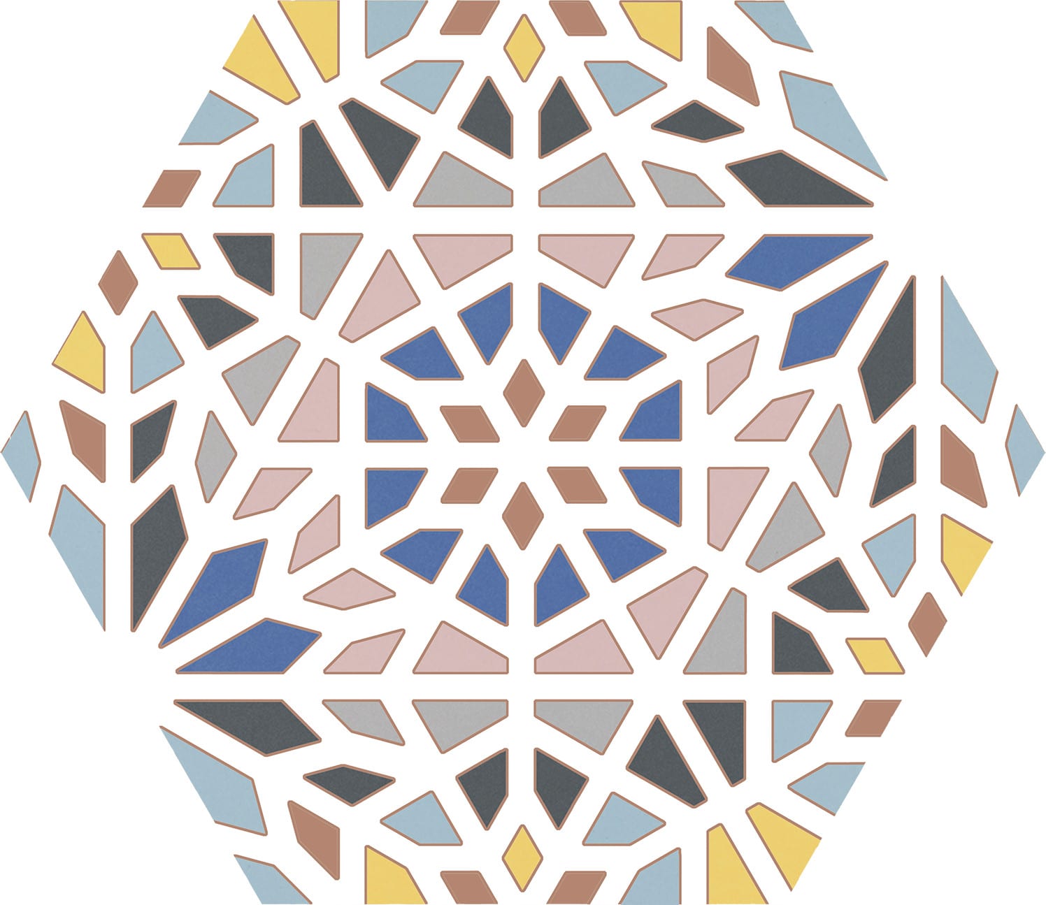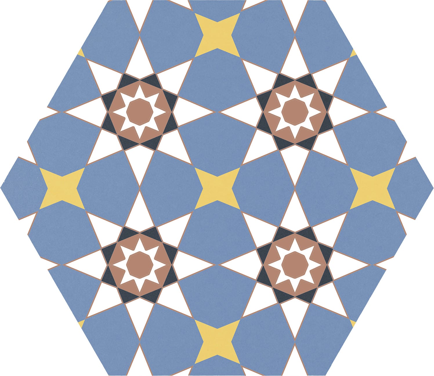 47,04 € / m2 (TTC)Série KASBAH MIX ANUBIS. Grès cérame de type carreau de ciment au format hexagonal 22×25, présente une finition mate.