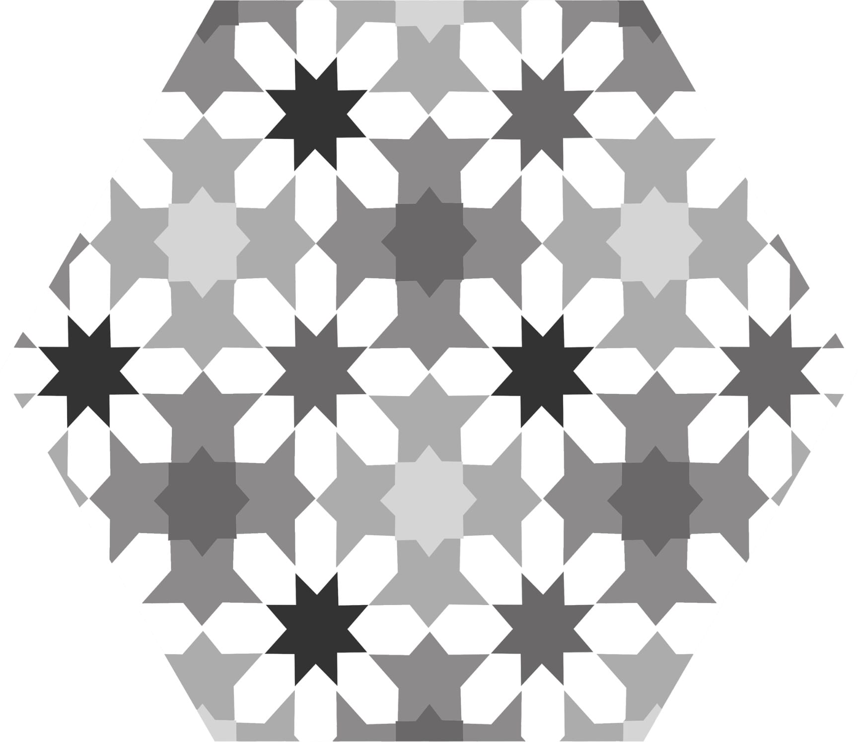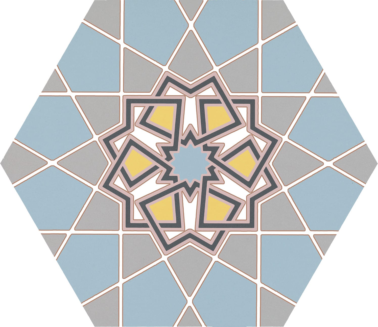 Série KASBAH MIX ANUBIS. Grès cérame de type Ciment au format hexagonal 22×25, présente une finition mate.