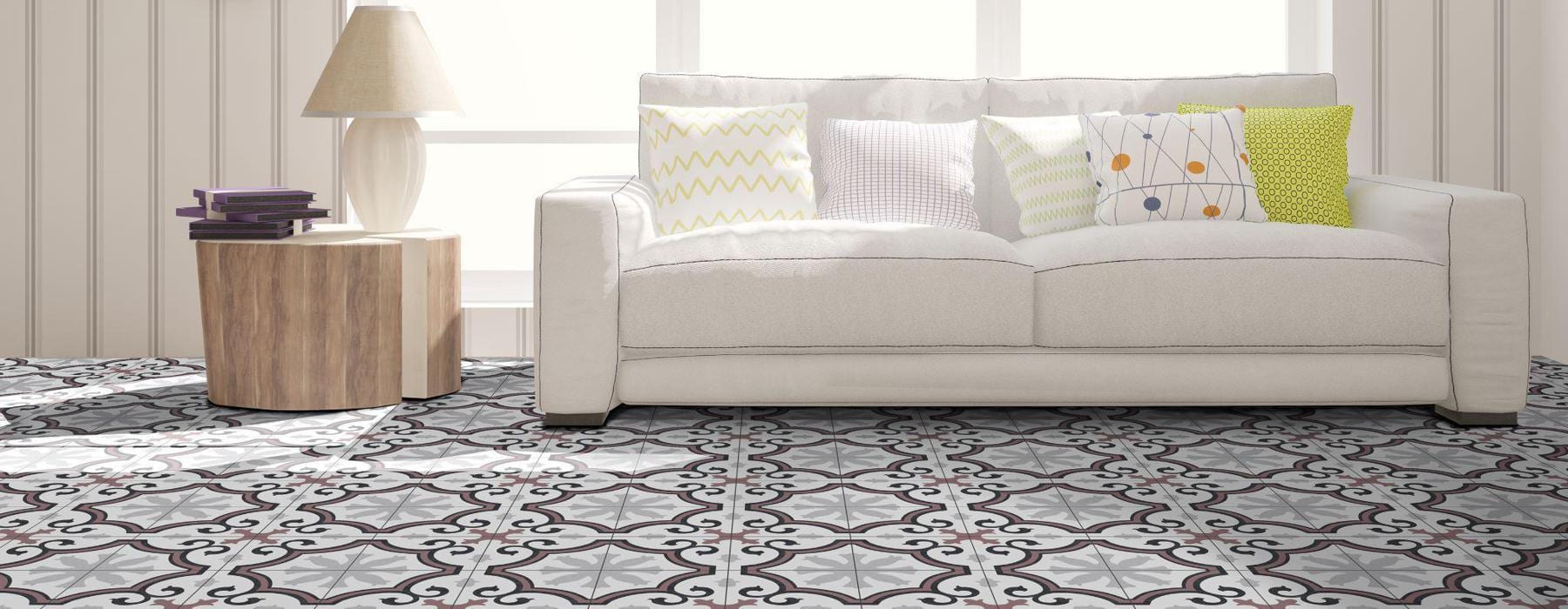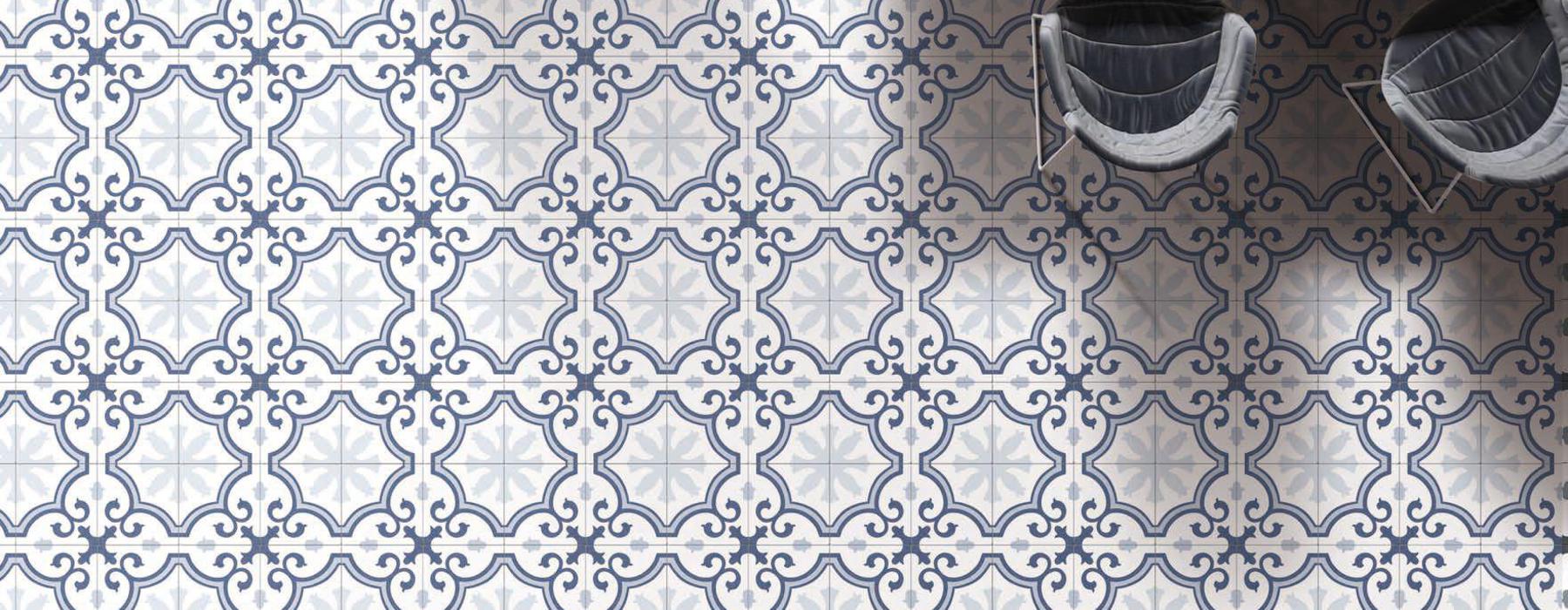 Série LACOUR . Carrelage grès cérame imitation carreau de ciment en format 25×25, finition mate.