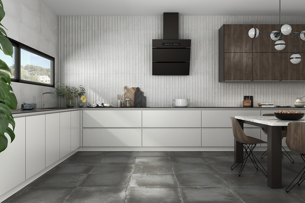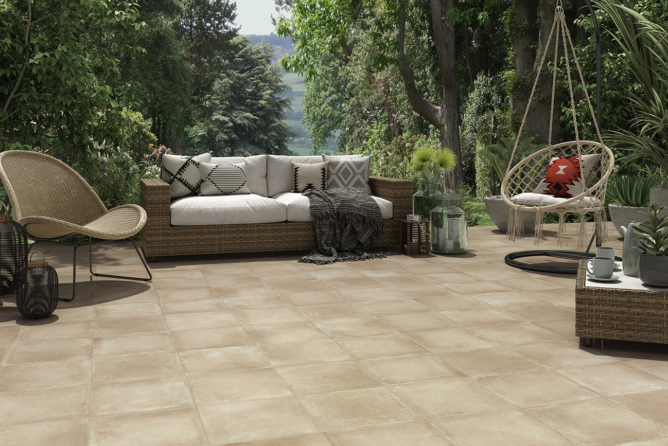 En Carrelage Grès Cérame il présente la finition SLIPSTOP, qui convient aussi bien à l’intérieur qu’à l’extérieur grâce à sa texture douce mais antidérapante.
