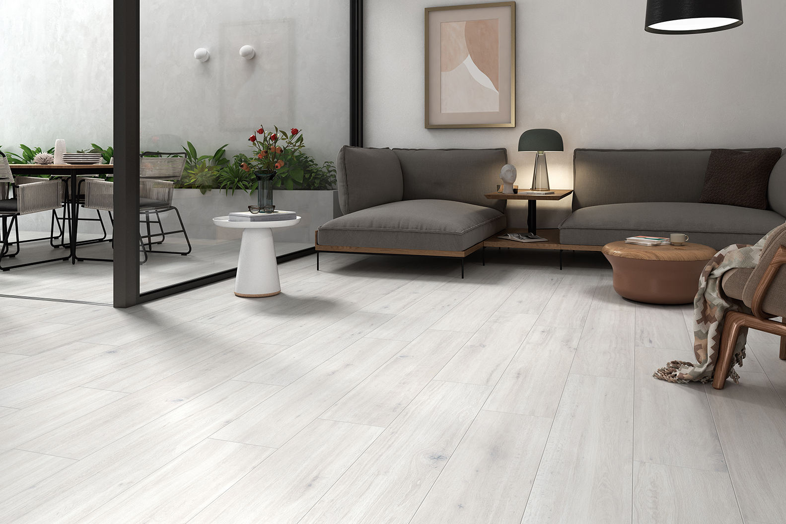 Cette série présente la finition SLIPSTOP, qui convient à la fois aux intérieurs et aux extérieurs grâce à sa texture lisse mais en même temps antidérapante et facile à nettoyer.
