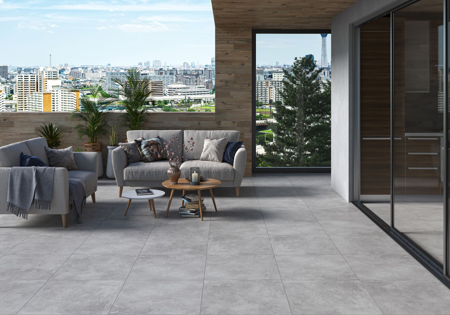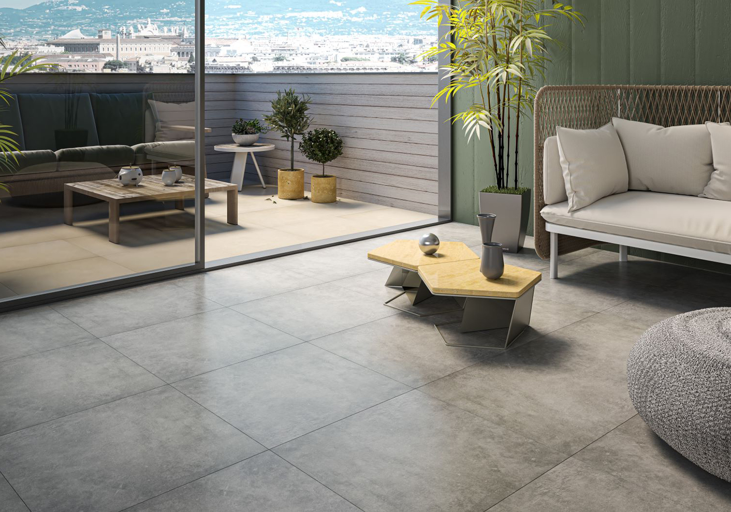 La Série Mondo est disponible en format 60×60 avec des options antidérapantes ou mates.