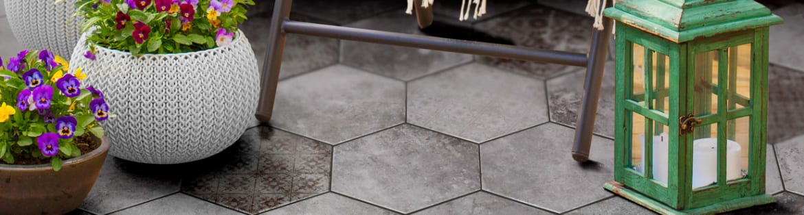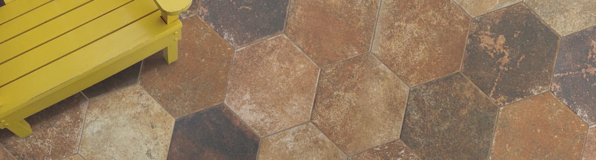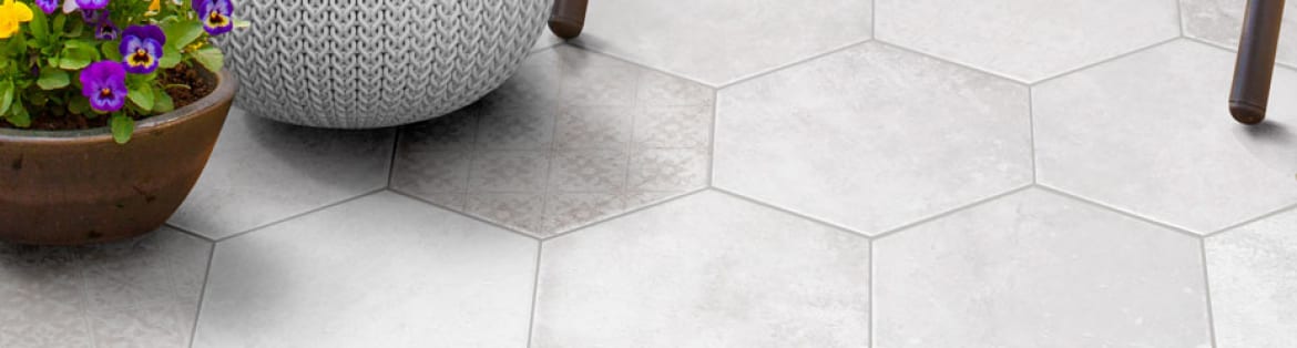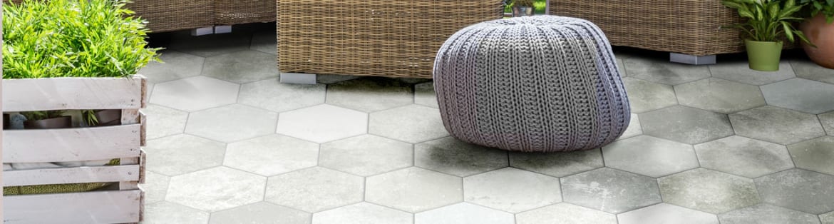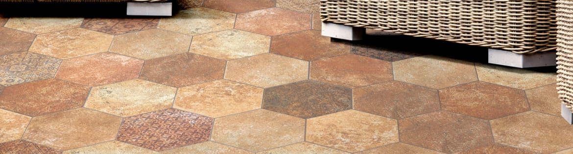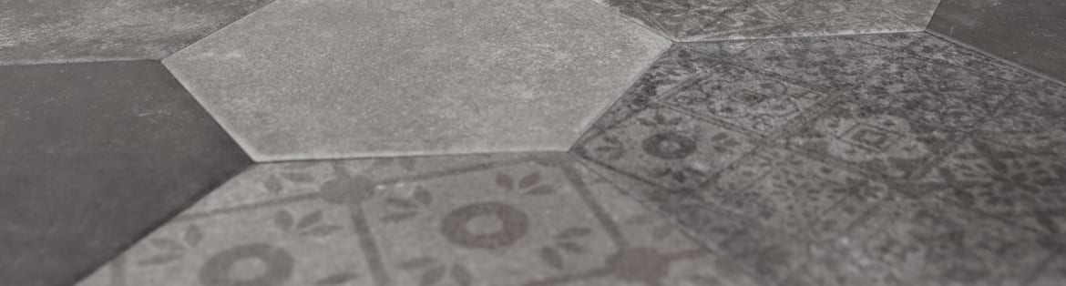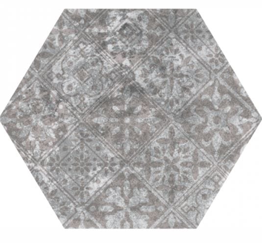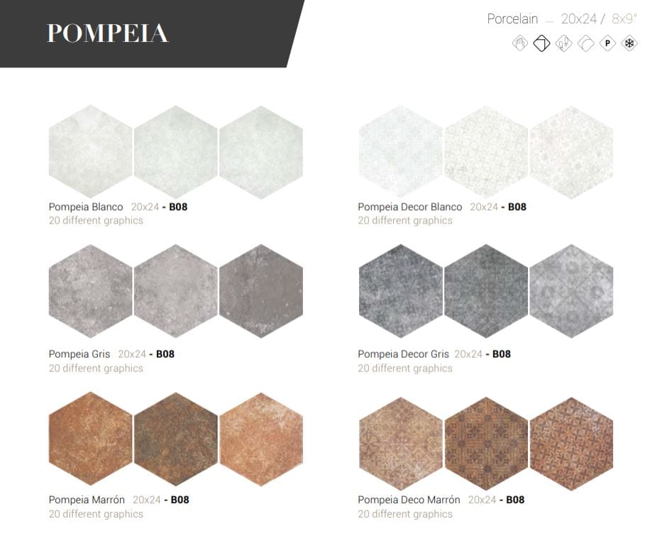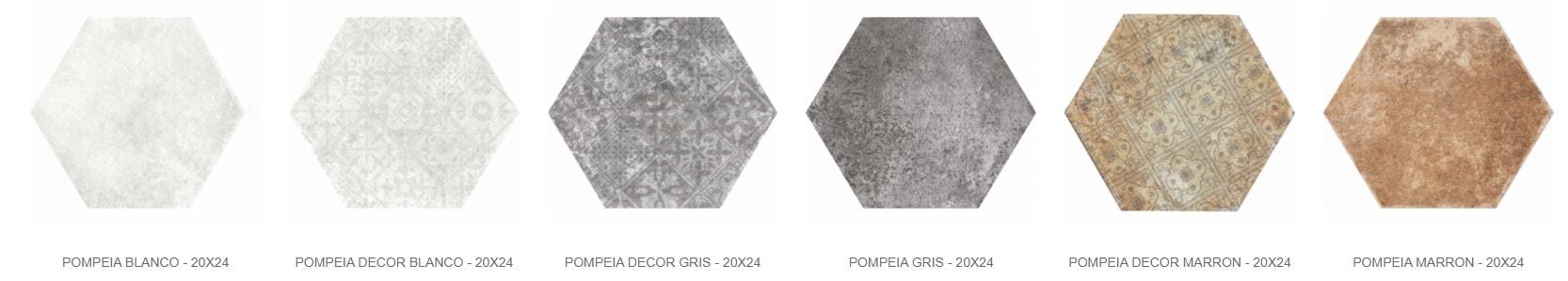 Série POMPEIA. Carreaux de Grès Cérame imitation Carreaux de Ciment avec finition mate disponible au format hexagonal 20×24