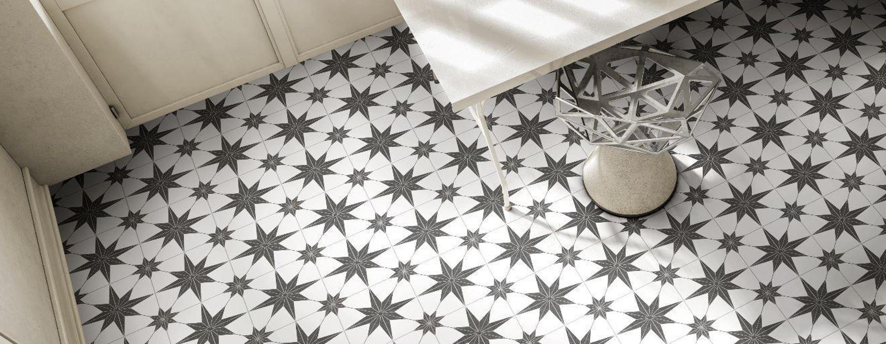 Série STELLA carrelage grès cérame imitation de carreaux de ciment au format 25×25, présente une finition mate.