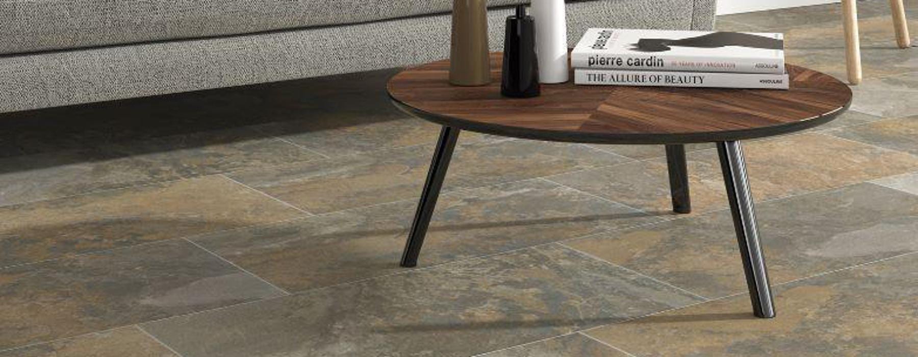 La série VERIN est un grès cérame de type pierre avec une finition antidérapante qui présente un relief doux et se trouve dans un format 33×66.