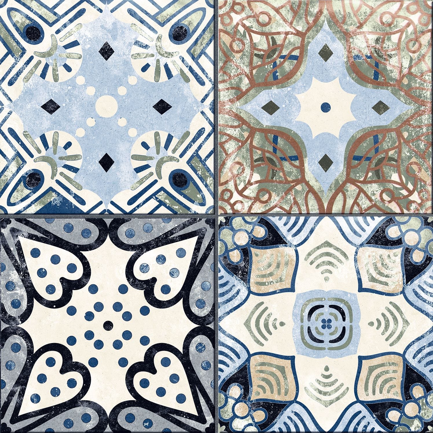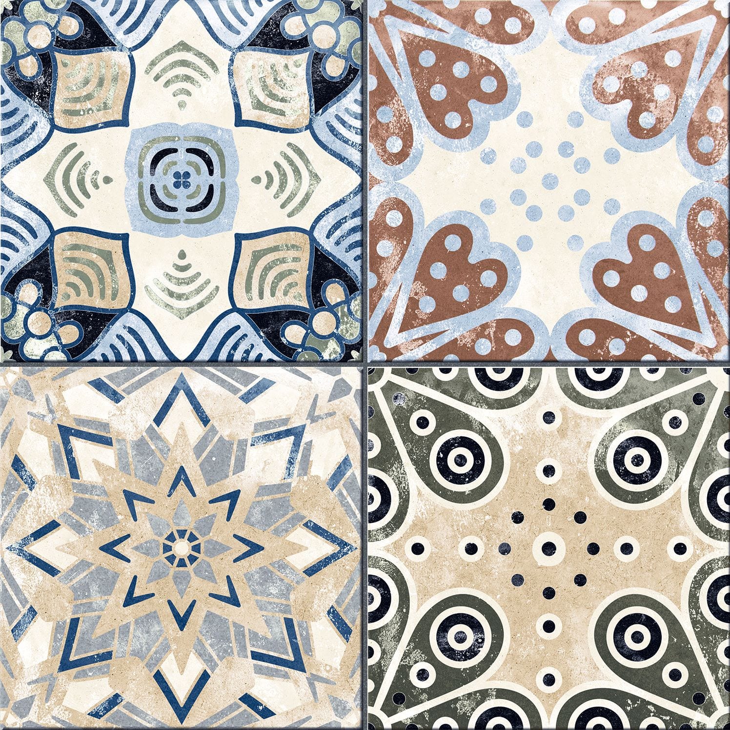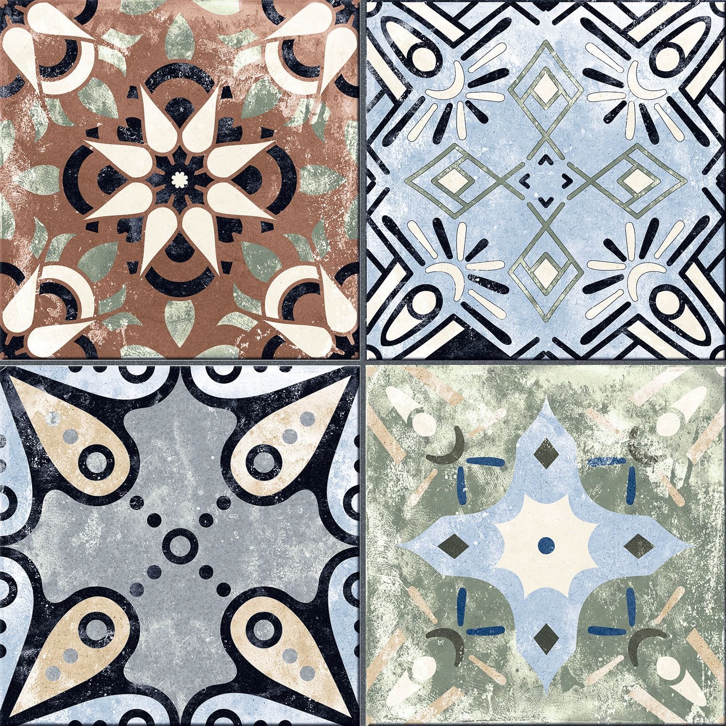 41,52 € / m2 (TTC)La série XEREA est un carrelage en grès cérame imitation carreaux de ciment au format 25×25 qui a une finition mate. Différents modèles mélangés au hasard dans chaque couleur